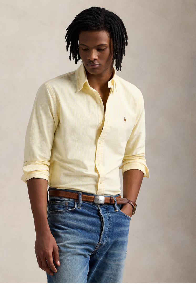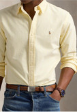 پیراهن پولو رالف لورن در طرح راهراه زرد کرهای و سفید، یک انتخاب جسورانه و ترند است. پارچه آکسفورد باکیفیت، دوخت عالی برند را بهخوبی نمایش میدهد. این مدل برای افرادی ایدهآل است که به دنبال تزریق انرژی و تمایز به استایل کلاسیک خود هستند.
