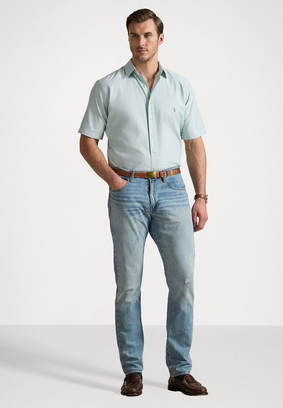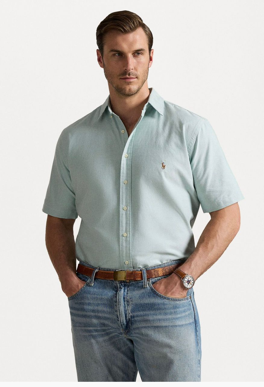 پیراهن آستین کوتاه رالف لورن در طیف رنگی آبی بسیار کمرنگ آبی روشن یا آبی آسمانی قرار دارد این رنگ به دلیل ملایمت و خنثی بودنش، یکی از محبوبترین و پرکاربردترین رنگها در طراحی لباسهای اسپرت و نیمهرسمی محسوب میشود