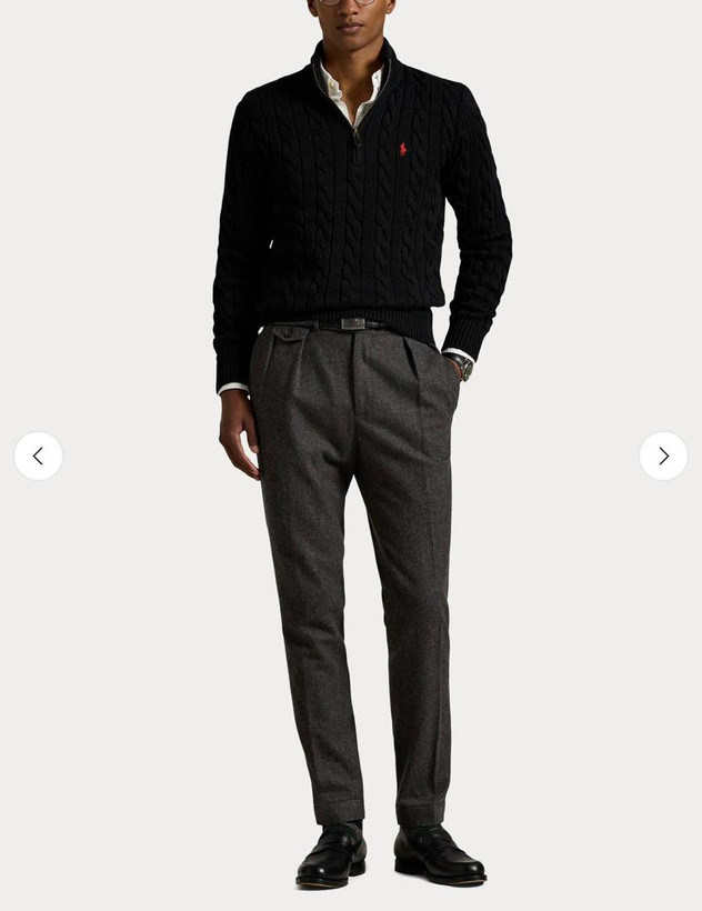 بافت زنجیرهای مشکی رالف لورن، یک قطعهی کلاسیک و ظریف است. این بافت با طرح برجستهی معروف خود، هم حس گرمی و هم حالوهوای لوکس دارد. رنگ مشکی عمیق آن، باعث میشود تا برای هر استایل ساده یا مجلسی، انتخابی مناسب و شیک باشد.